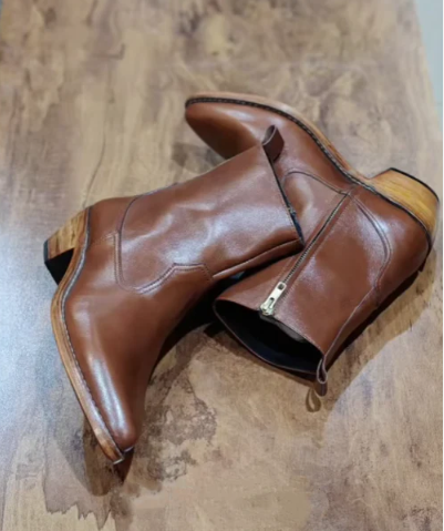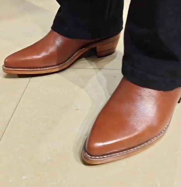 Men's Pointed Toe Western Cowboy Chunky Heel Ankle Boots