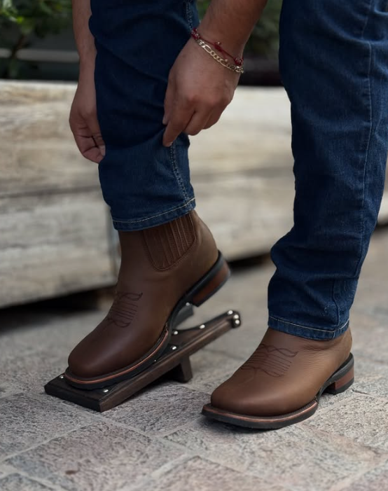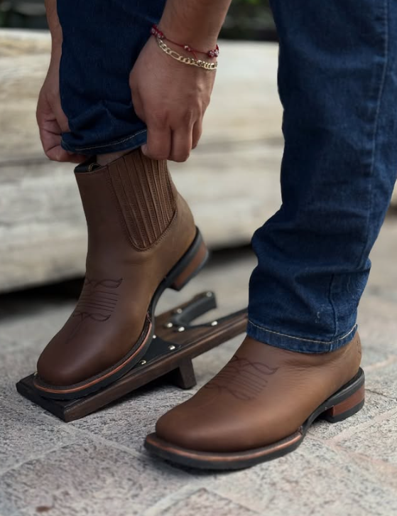 Men's Vintage Embroidered Wide Toe Western Cowboy Boots