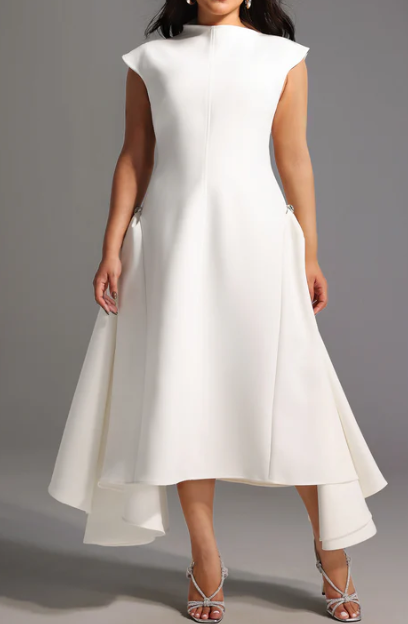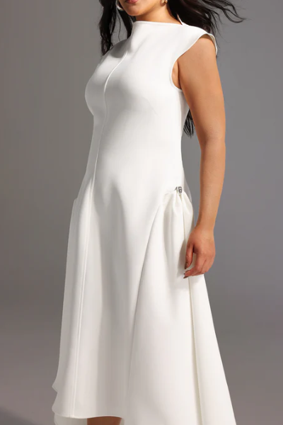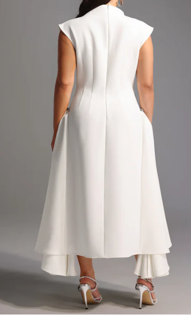 The Sleeveless Asymmetric Maxi Dress in White combines refined elegance with contemporary design. Featuring a sleek sleeveless cut and a striking asymmetric hem, this dress offers a flattering silhouette that enhances movement and style. Its crisp white color provides a fresh, versatile foundation perfect for upscale events or sophisticated daytime occasions. Expertly tailored, this maxi dress balances modern aesthetics with timeless grace, making it a standout addition to any discerning wardrobe.