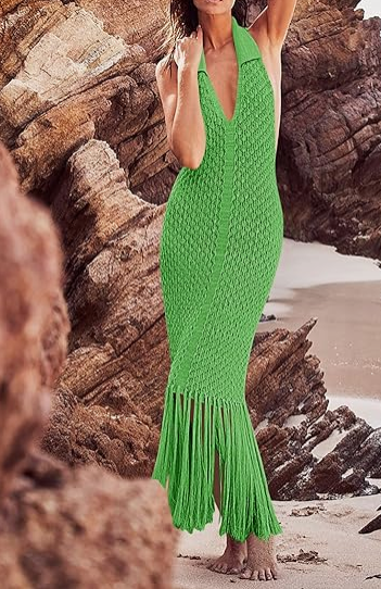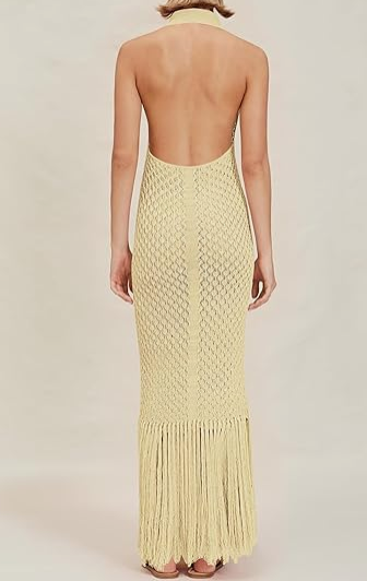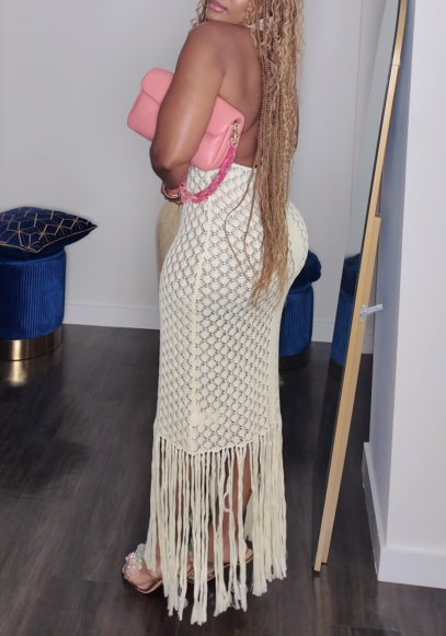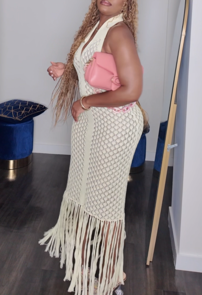 Crochet Fringe Sexy Backless V Neck Maxi Dress