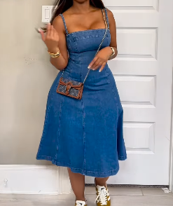 Women's sleeveless denim dress is made of high-quality fabric, comfortable and lightweight.