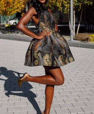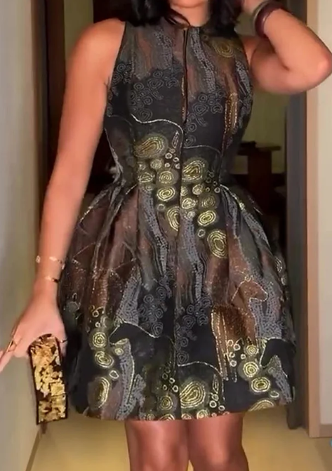 Pattern Print Round Neck Sleeveless A-Line Mini Dresses