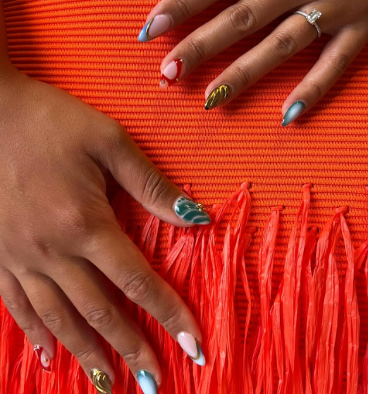 - Self: 65% rayon/35% nylon; trim: 100% raffia; lining: 100% polyester