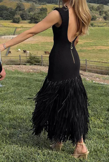Solid Color Raffia Patchwork Knitted Long Skirt