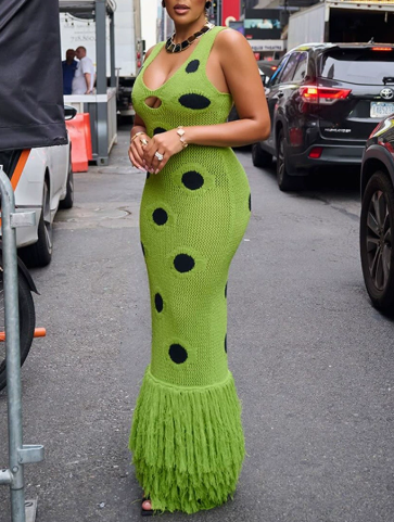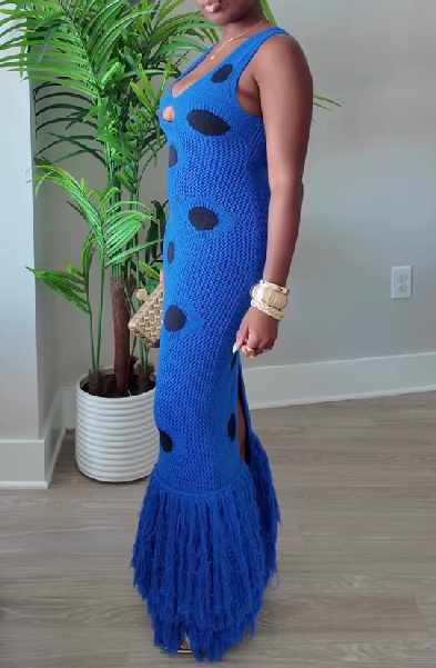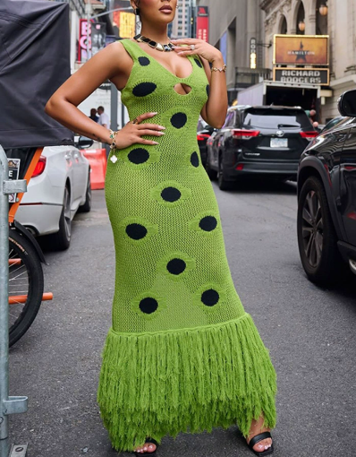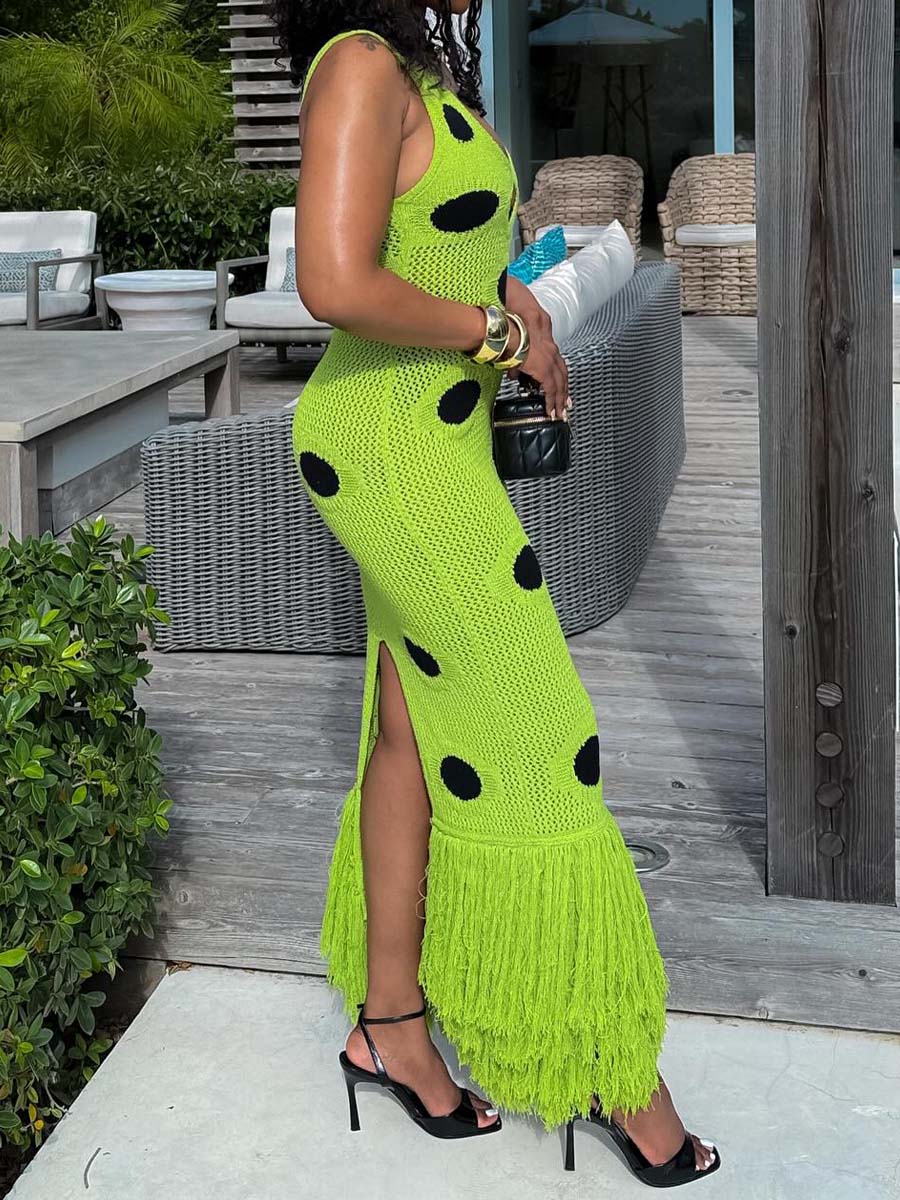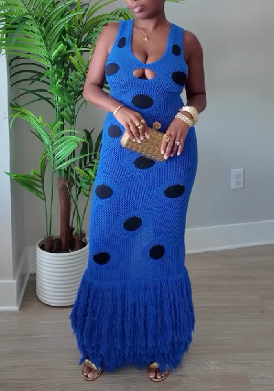 Strapless Knitted Hem Tassel Maxi Dress