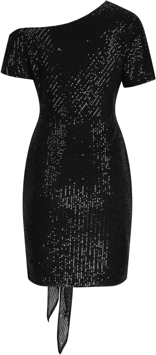 Women's Sequin Glitter One Shoulder Bodycon Dress